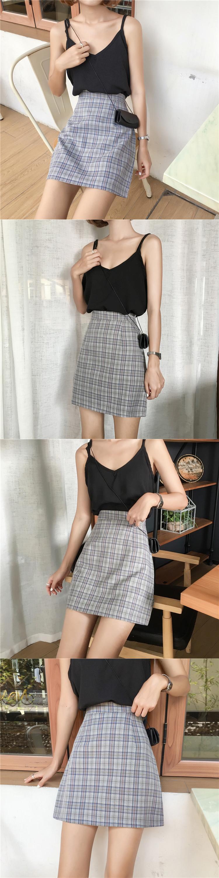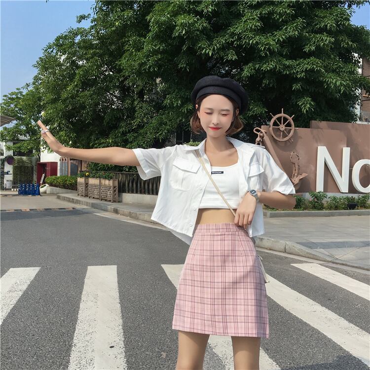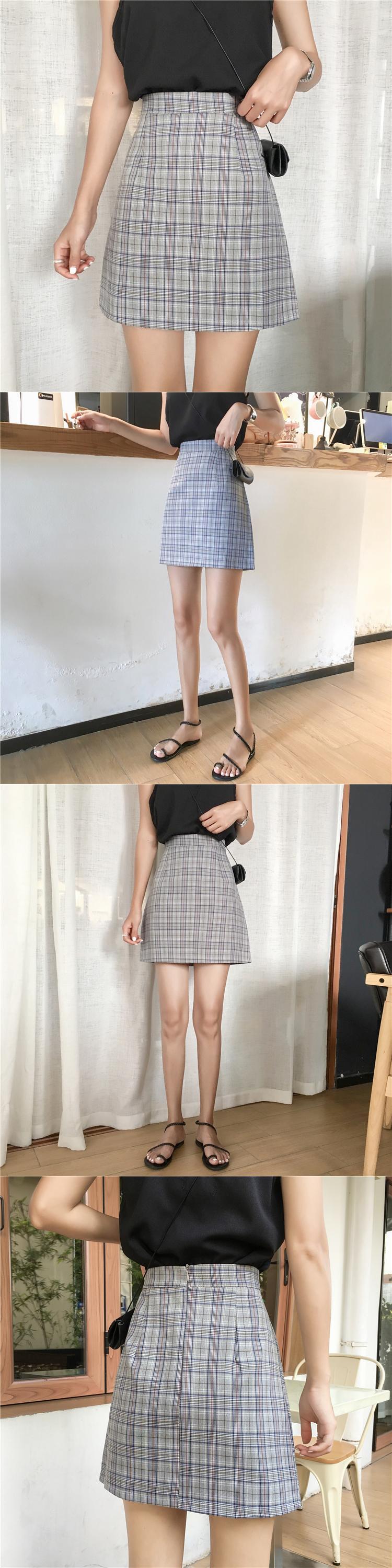 スプリングスカート レディースハイウェストウェストホワイト格子柄Aラインショート夏服薄手 春物 夏物 ウエスト Marchs22201941820