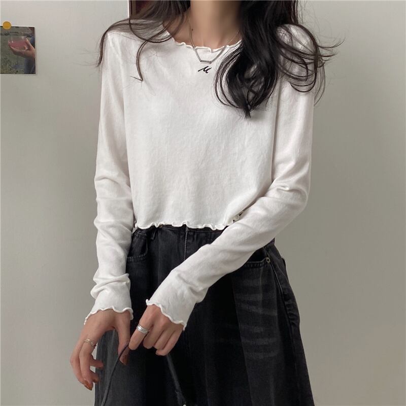 ホワイトニットゆったりシャツ レディーススプリング秋物スリムショートトップス ハイウェストウェストパンツ ロング 春物 オータム 長袖 ウエスト Marchs32664992539