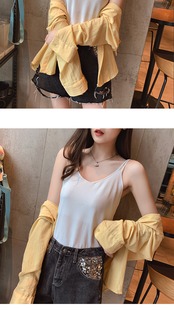 Vネックスプリングブラックルーズ薄手トップス 春物 シルク Marchs14938064392