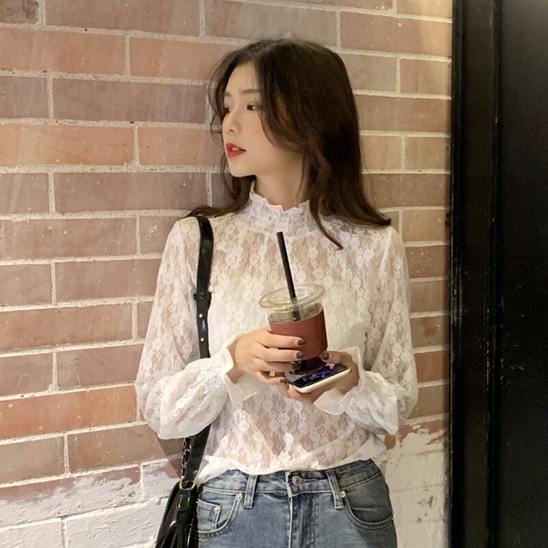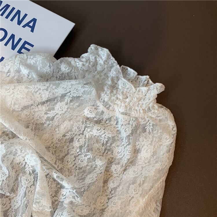 レースメッシュゆったりシャツ スプリング薄手カラーホワイト長袖スリーブTシャツ ロング 春物 Marchs33624941847