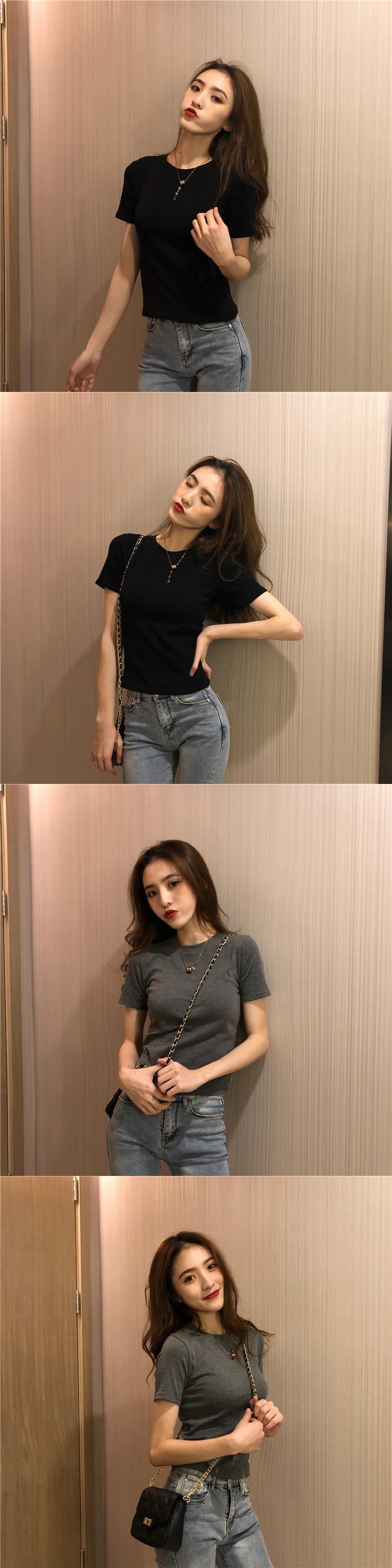 夏服トレンドTシャツラウンドネックゆったり薄手韓国ファッションブラックホワイト コットン 夏物 Oネック スタイル Marchs65700814716
