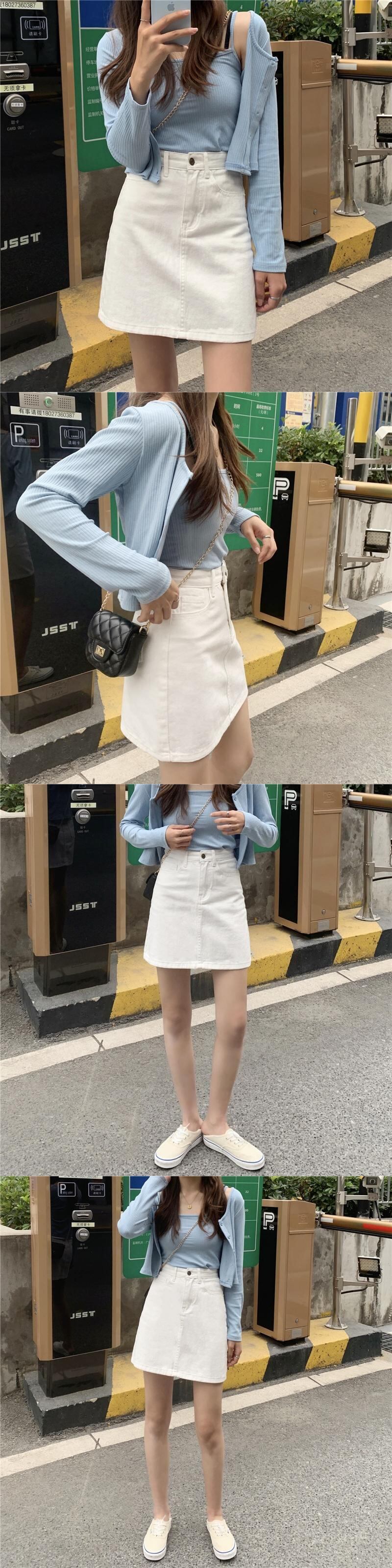 ウェストスカート レディース夏服韓国ファッショントレンドスタンダードホワイトAライン レトロ 夏物 スタイル ウエスト Marchs98684874827