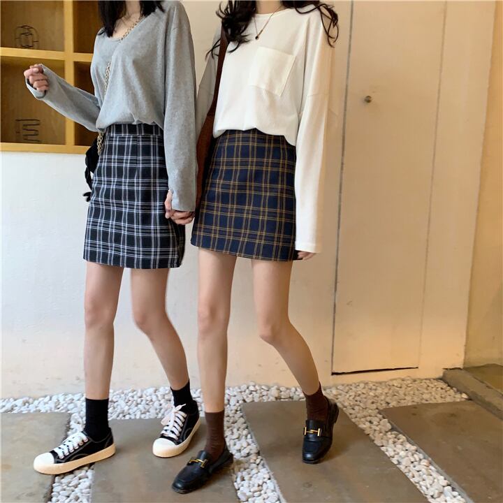 スカート 韓国ファッションスタイルハイウェストウェストAラインレディース夏服格子柄ショートスプリング秋物 春物 夏物 オータム ウエスト Marchs29394987524