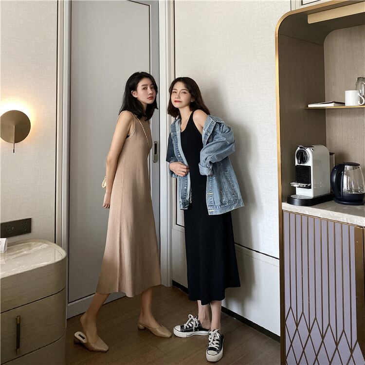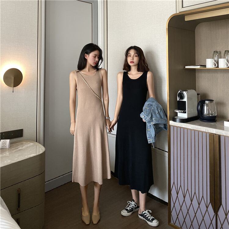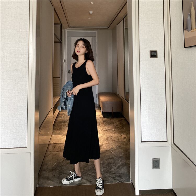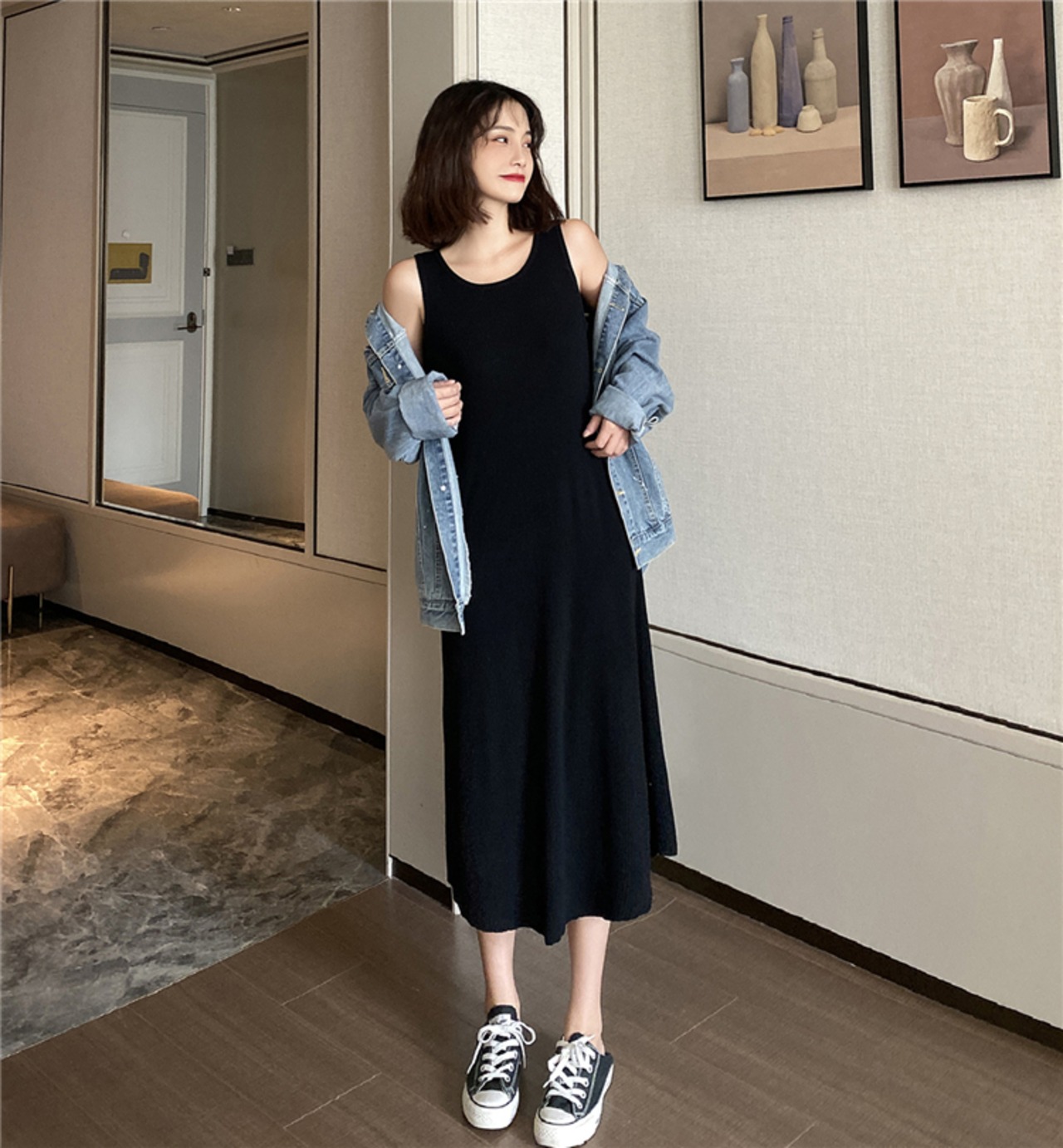 ノースリーブニットワンピースレディーススプリング夏服ブラックゆったりスカート ロング 春物 夏物 ミドル丈 Marchs75411125274