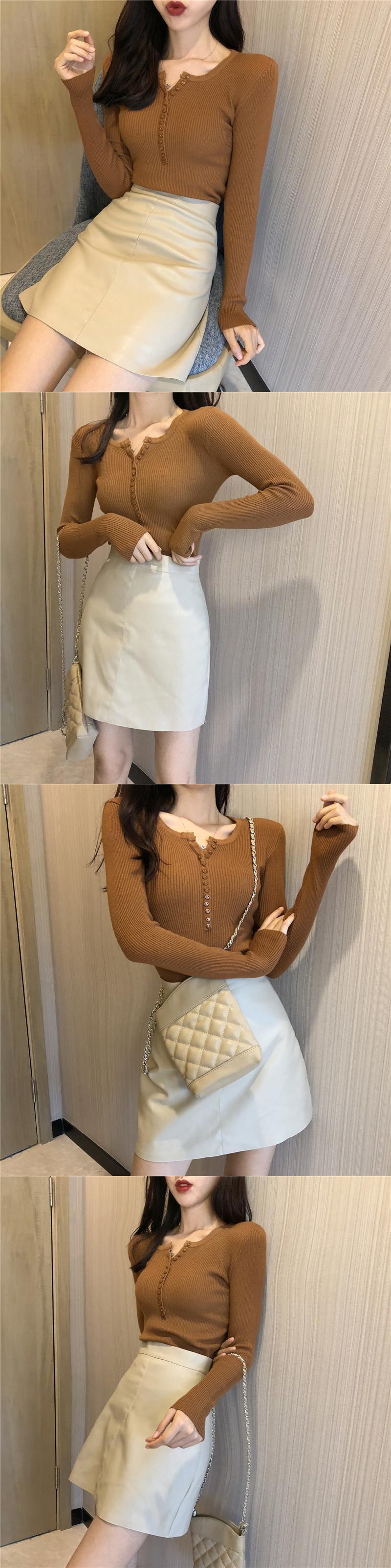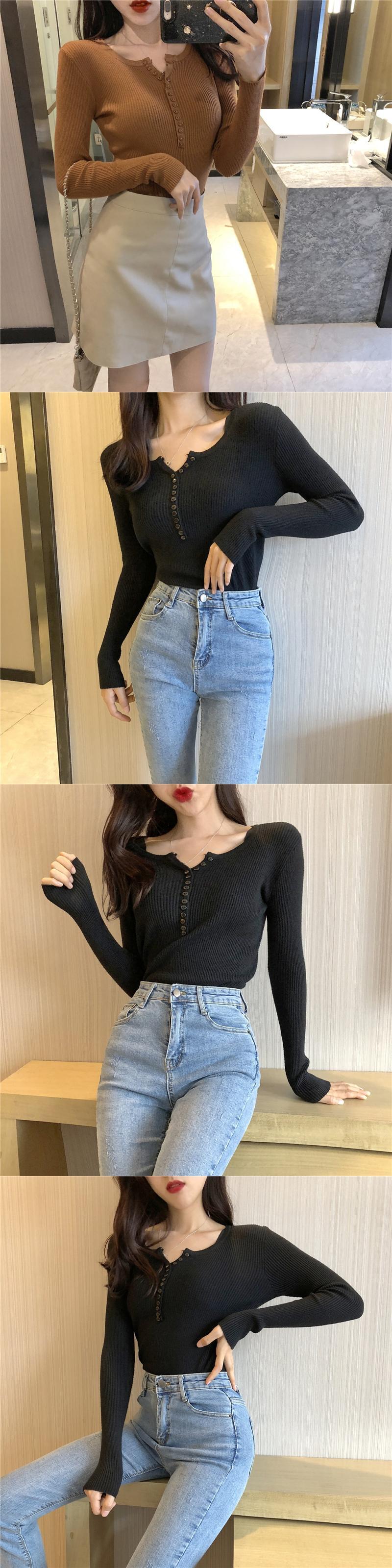 スプリングVネックセーター ゆったりシャツ ソリッド カラーニット ロング 春物 ソリッドカラー 長袖 Marchs45994148588