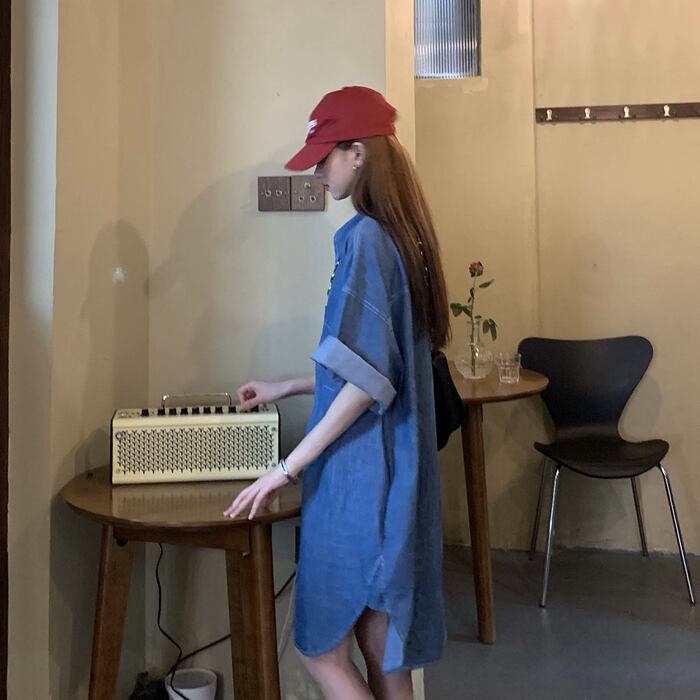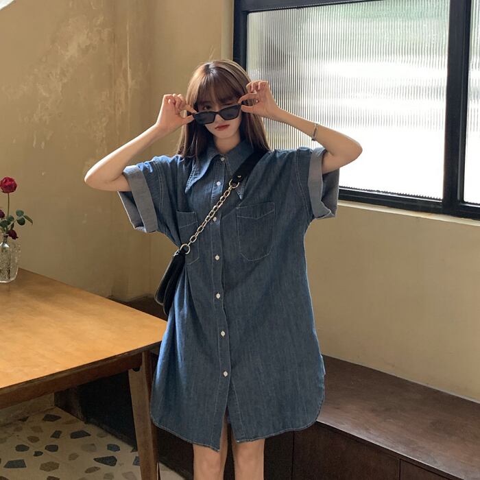 カラーワンピースレディース夏服スタンダードルーズシャツ スカート レトロ 夏物 Marchs17419859975