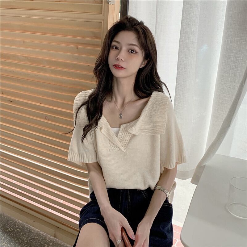 韓国ファッションスタイルVネックシャツ レディース夏服ルーズカラートップス 夏物 ピュア Marchs57111708310