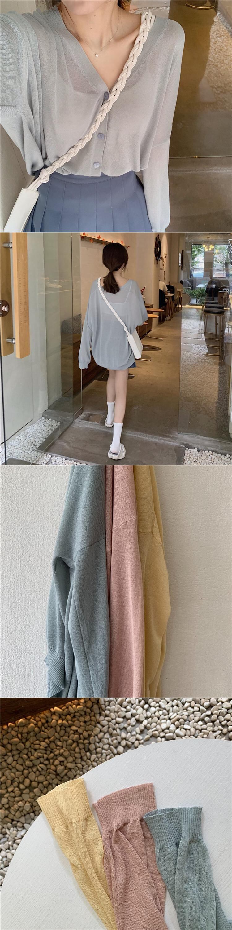 ニットカーディガン夏服韓国ファッション薄手スタイルソリッド カラールーズジャケット 大人ガーリー スウィート キュート カジュアル 夏物 シルク ソリッドカラー Marchs62146502027