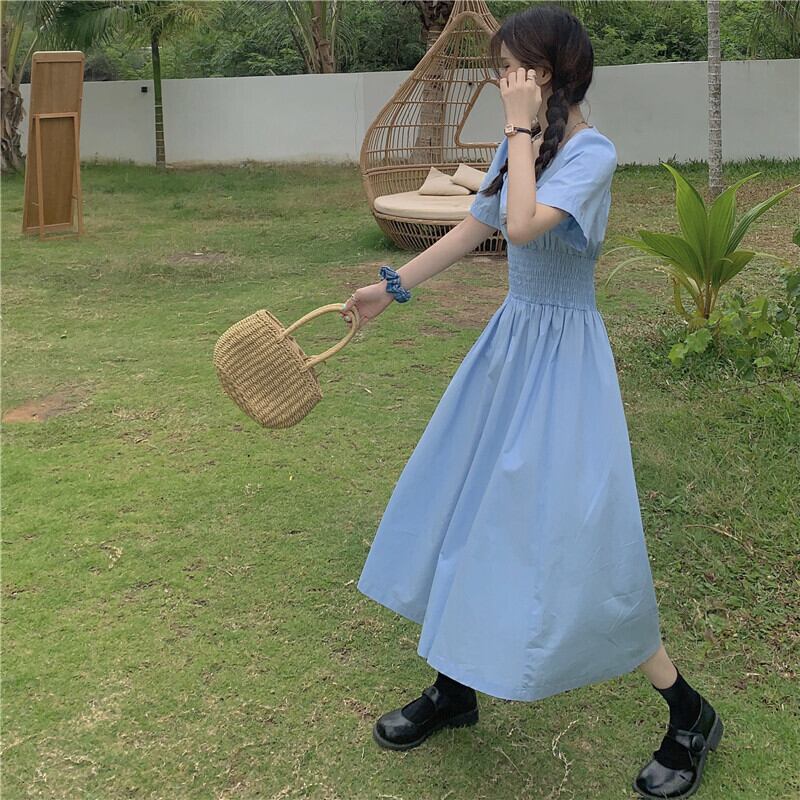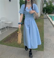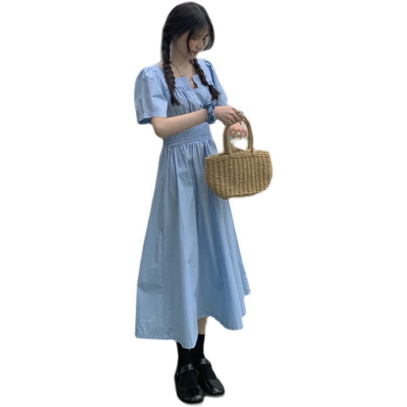 スカート スタンダードブルーロングレディースカラーワンピース レトロ 大人ガーリー スウィート キュート カジュアル スクウェア Marchs31080226053