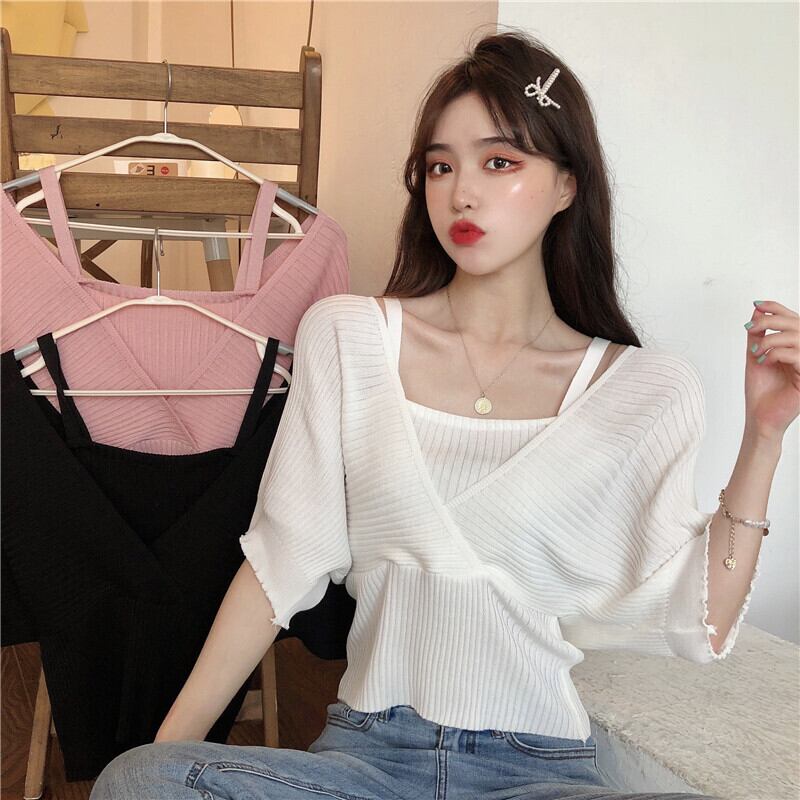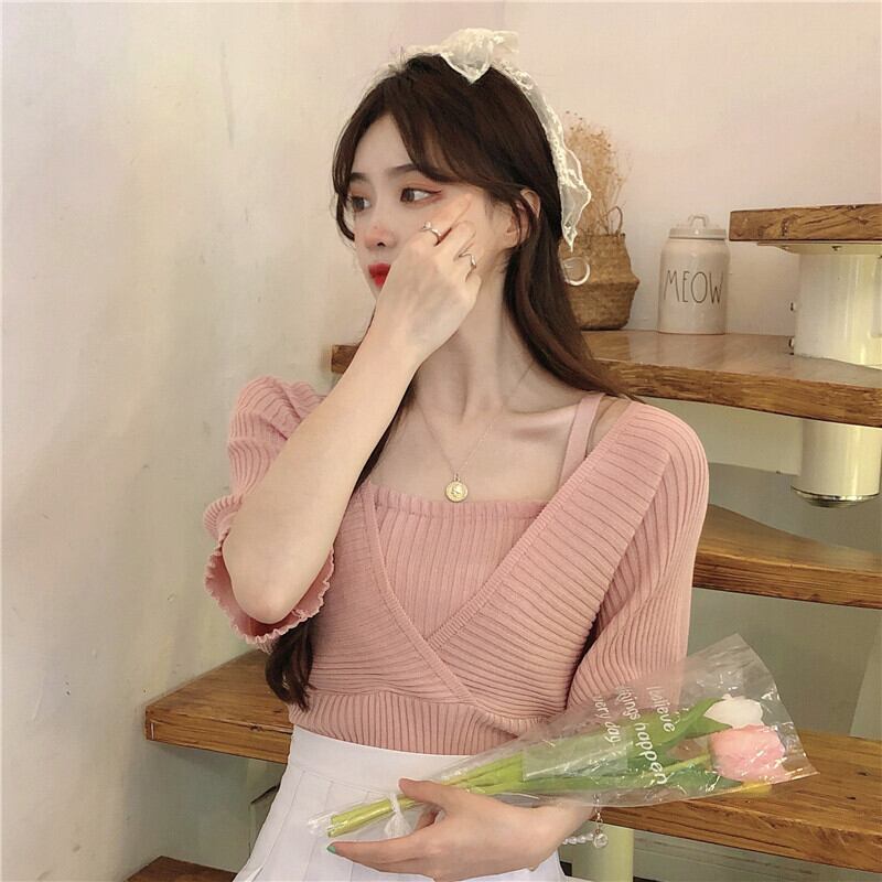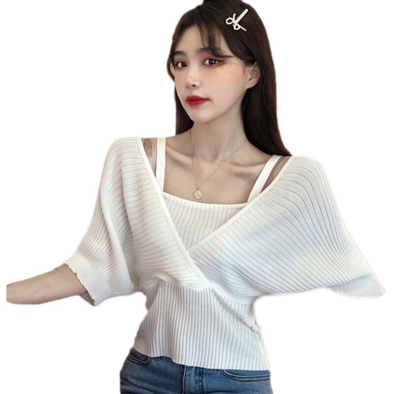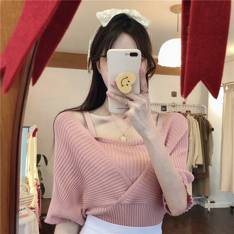 ホワイトニットショート夏服ルーズTシャツトップス 大人ガーリー スウィート キュート カジュアル 夏物 Marchs12272760707