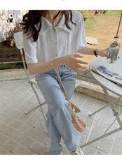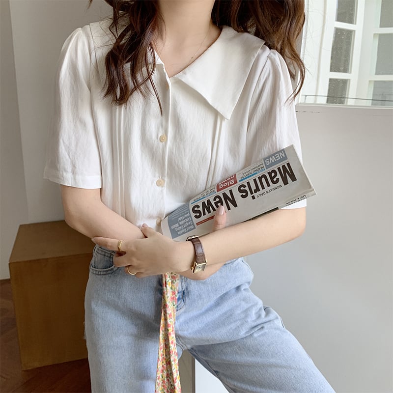 ホワイトシャツ スタンダードVネックトップス レトロ Marchs95515084312
