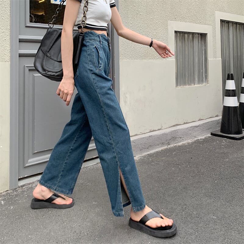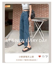 スタンダードダークブルージーンズ 夏服薄手ハイウェストウェストルーズワイドレッグパンツ レトロ 夏物 ワイドパンツ ウエスト Marchs28567815845