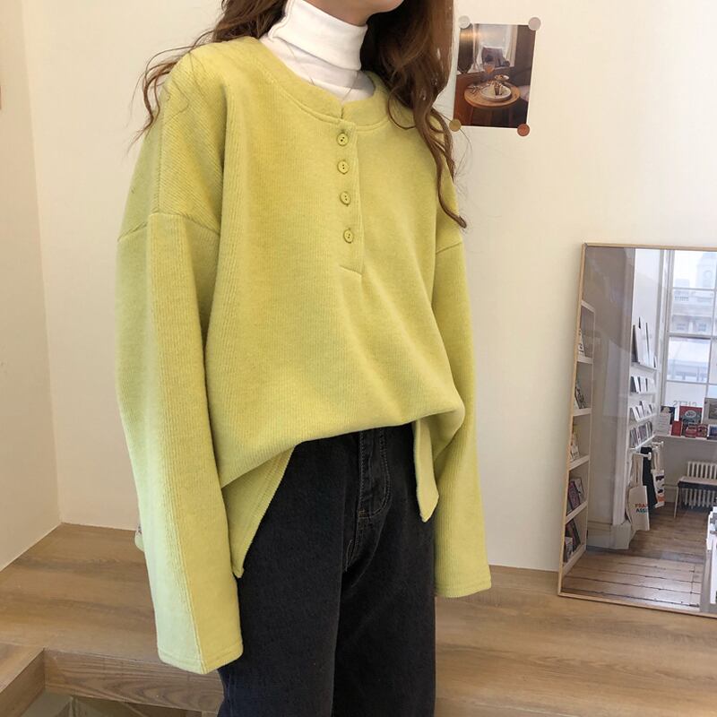 韓国ファッションスタイルルーズラウンドネックセーター レディーススプリングサイドコート 春物 Oネック Marchs42370643871