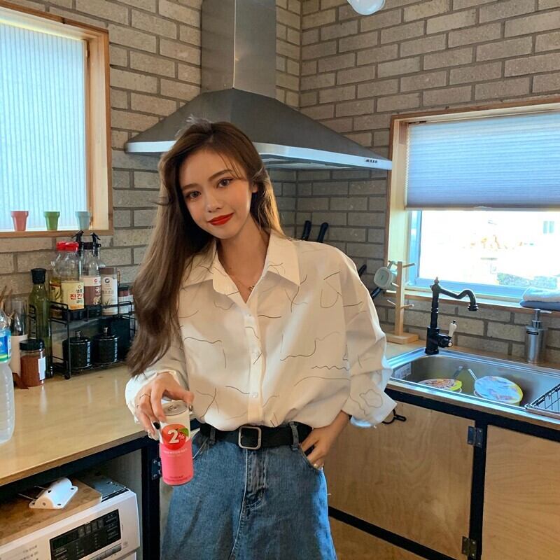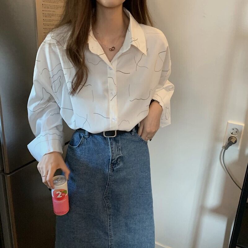 ホワイトシャツ 秋物スタイルトップス プリントカラーレディーススプリング長袖スリーブ ロング 春物 オータム Marchs37405319950