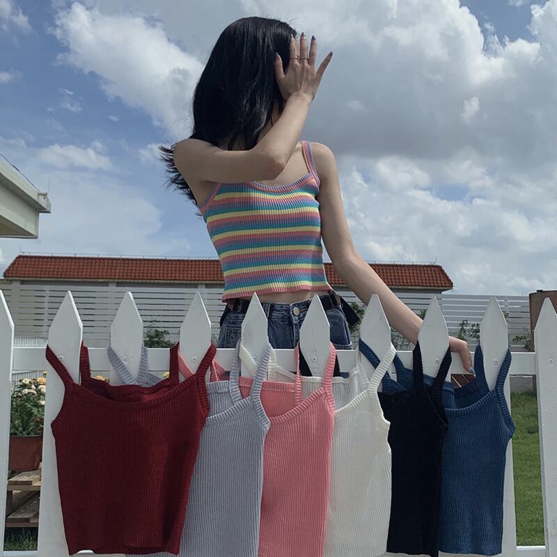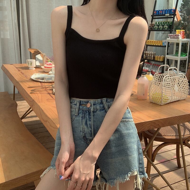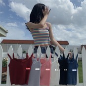 ニットスリムストラップレスノースリーブクロップドブラウス 夏服 夏物 Marchs10657788436