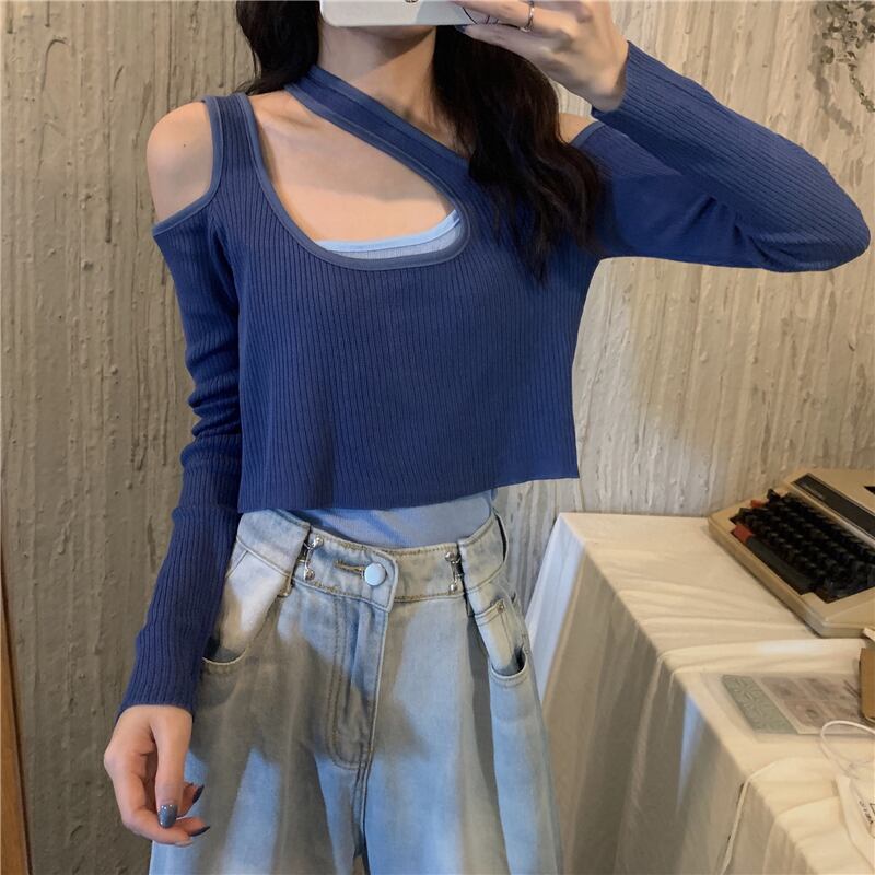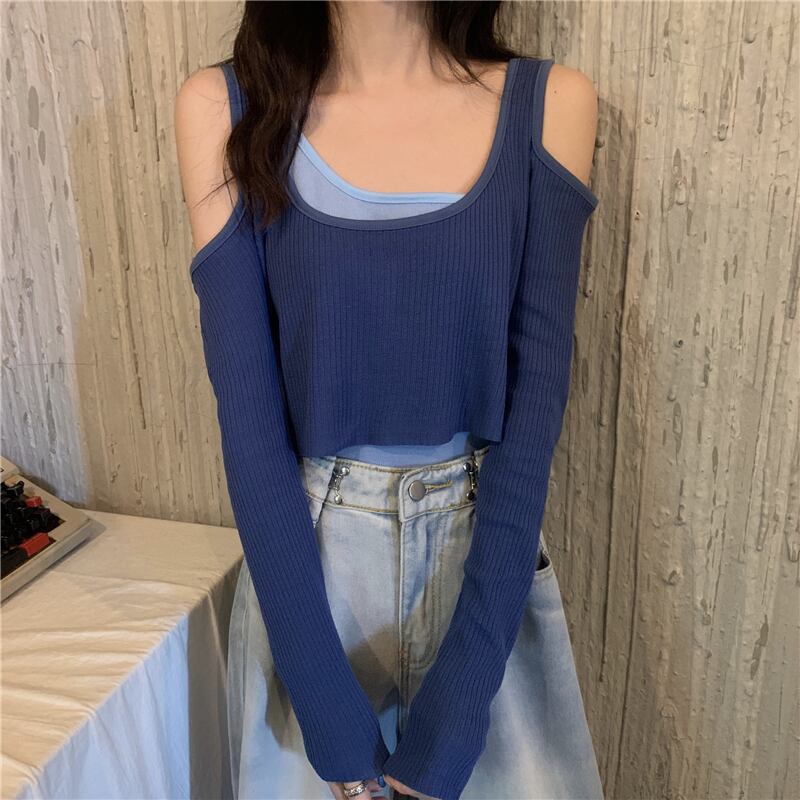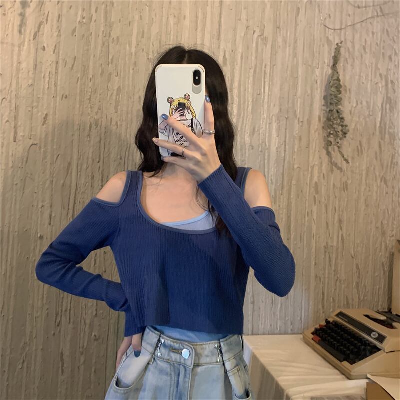ショートトップス ストラップレスゆったりセーター ロング 長袖 Marchs8264597211