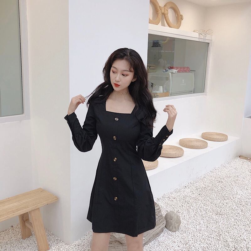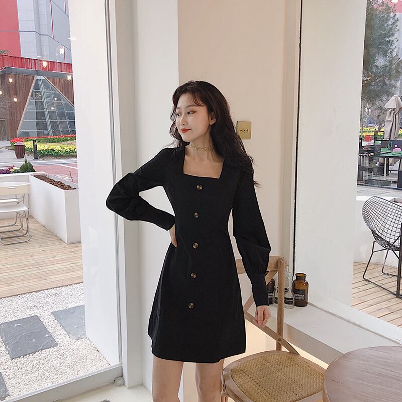 スプリングスカート スタイルスタンダードカラーブラックゆったりワンピース レトロ 春物 スクウェア Marchs95049153662