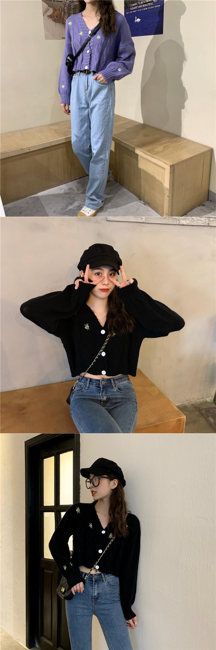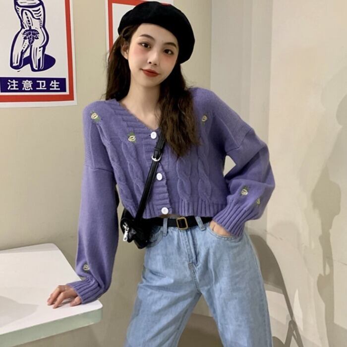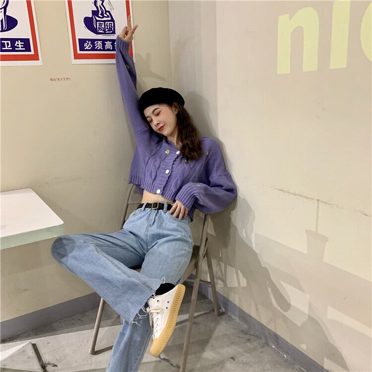 スプリングルーズクロップドトップス ハイウェストウェストパンツ Vネックカーディガンジャケット ニットセーター ロング 春物 長袖 ウエスト Marchs20612818485