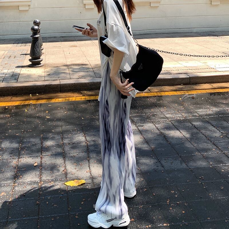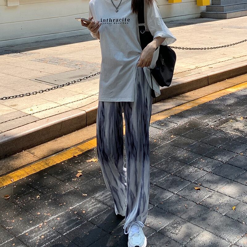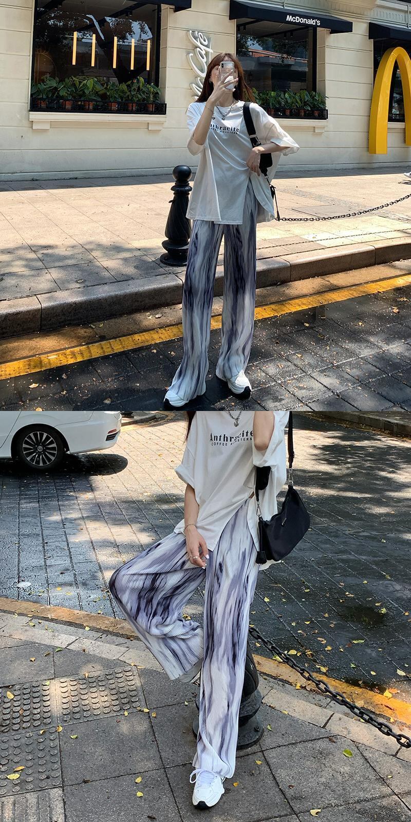パンツ ハイウェスト夏服薄手カジュアルルーズプリーツ 夏物 ウエスト Marchs95365818151