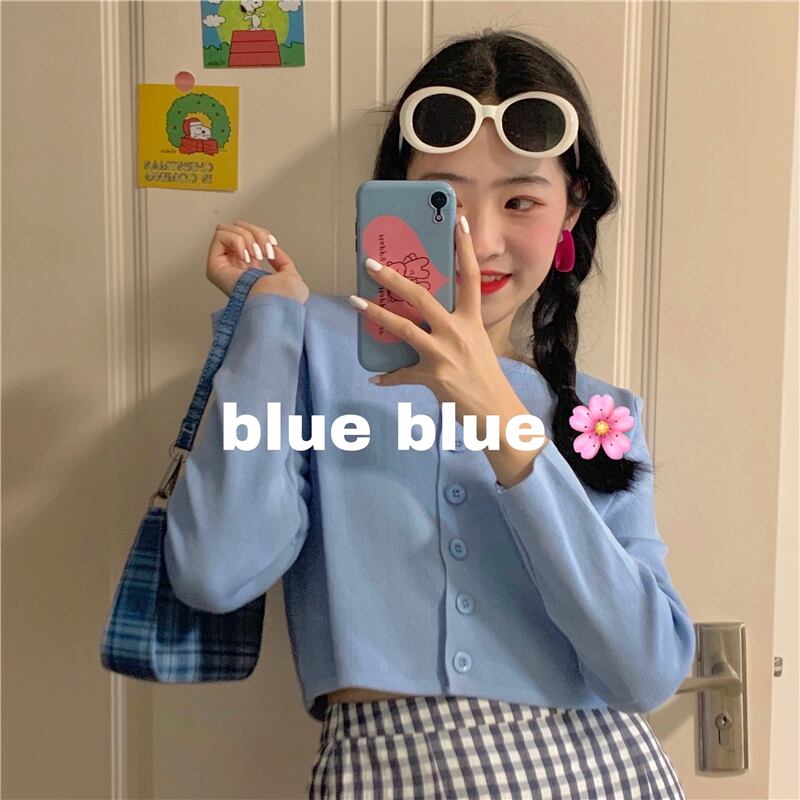 スプリングニットカーディガンショートトップス レディースブルールーズゆったりTシャツ 春物 Marchs71616980492