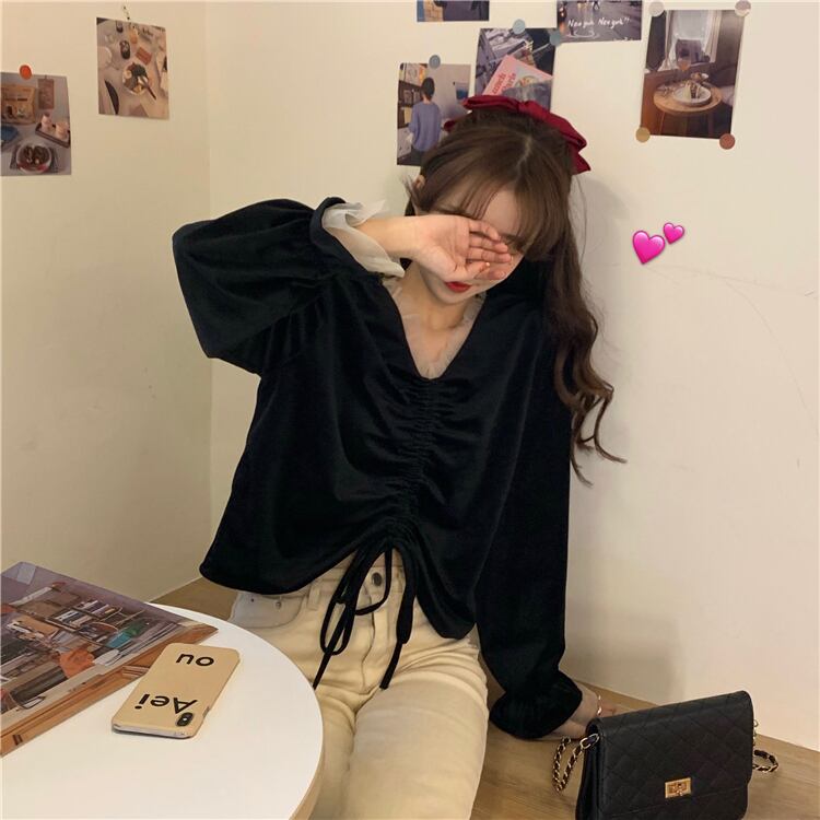 スプリングレディーストップス Vネックゴールド厚みブラックシャツ 春物 Marchs55510512465