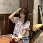 シフォンショートスリーブTシャツ夏服フローラルトップス 夏物 花柄 Marchs56067183415