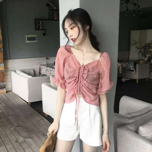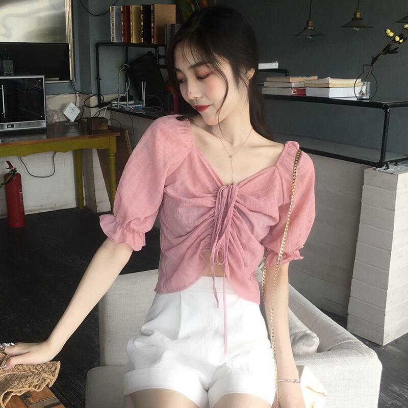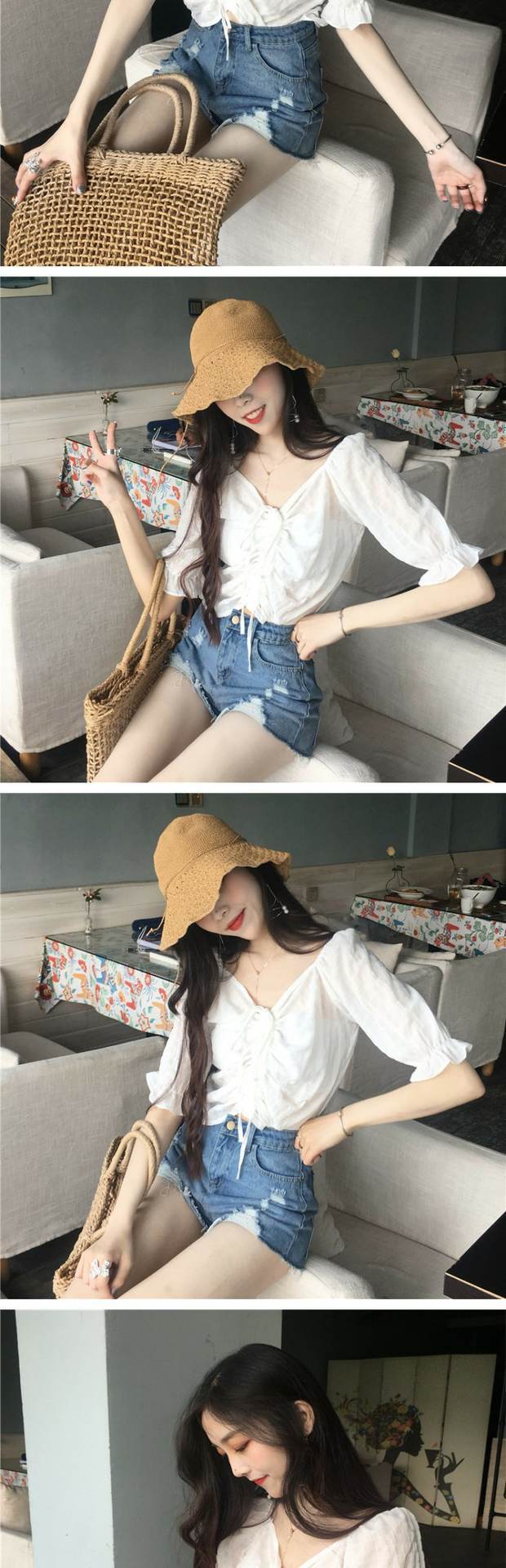 ギャザーレースVネック夏服シフォンシャツ スタイル 夏物 Marchs68684178918