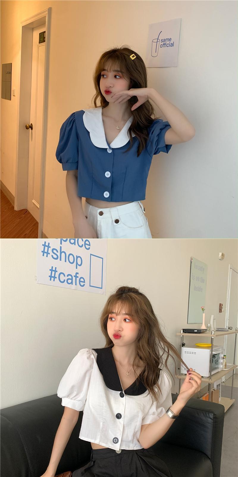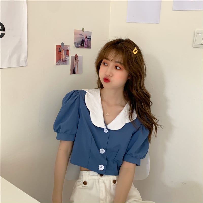 夏服カラーシャツ スリーブウェストショート半袖Tシャツレディース ハーフスリーブ 夏物 ウエスト Marchs19447507