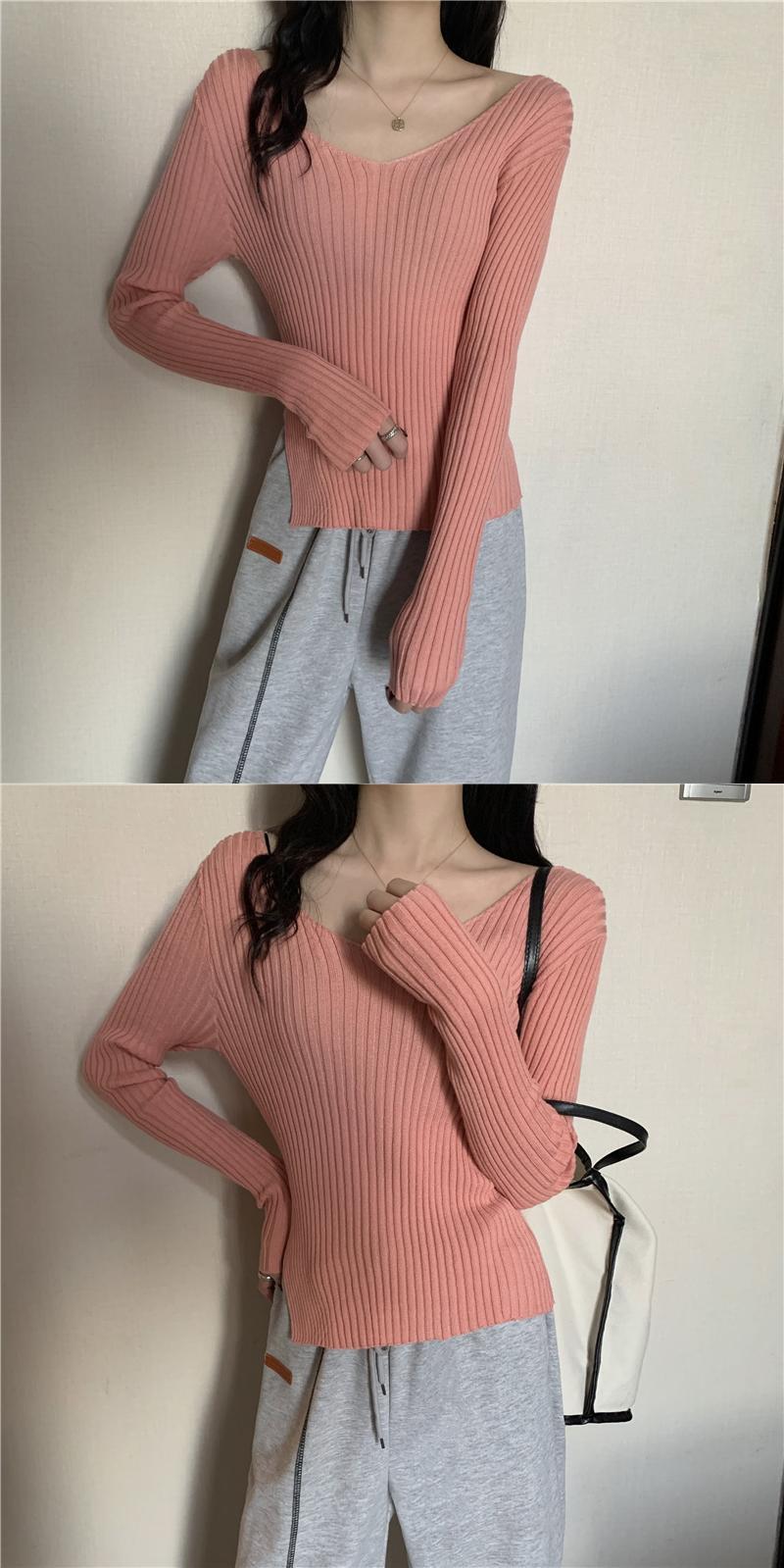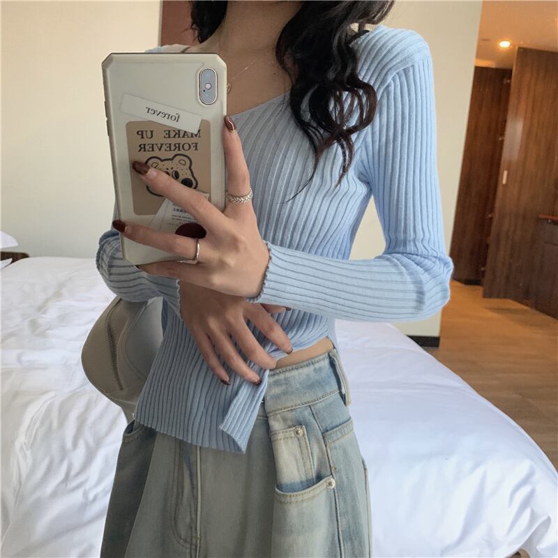 韓国ファッションオフショルダーニットゆったりシャツ スプリングセーター 春物 スタイル Marchs61507184849