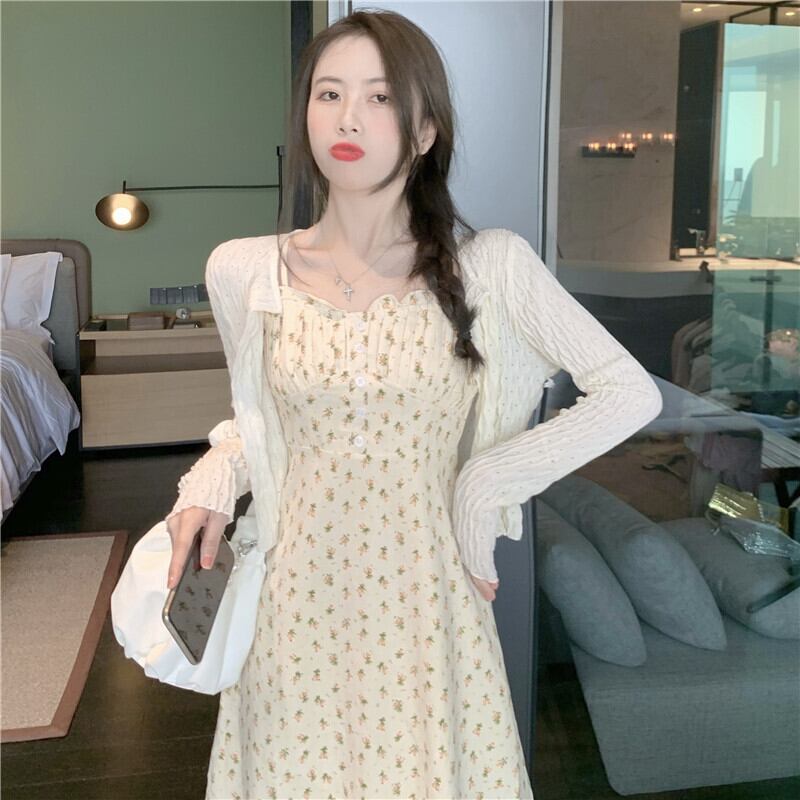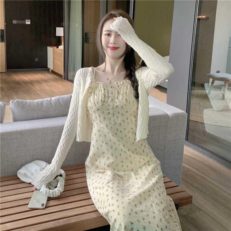 夏服イエローフローラルロングスカート ワンピーススプリング 春物 夏物 花柄 Marchs98903615851