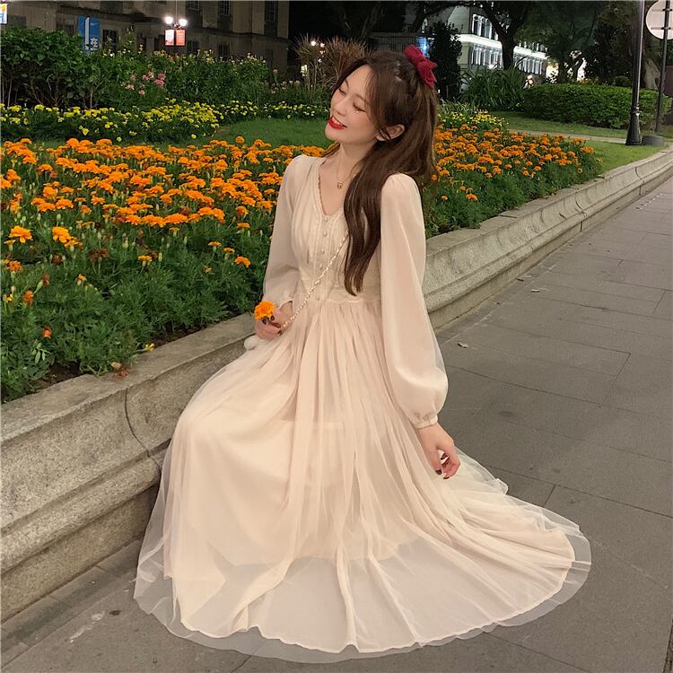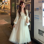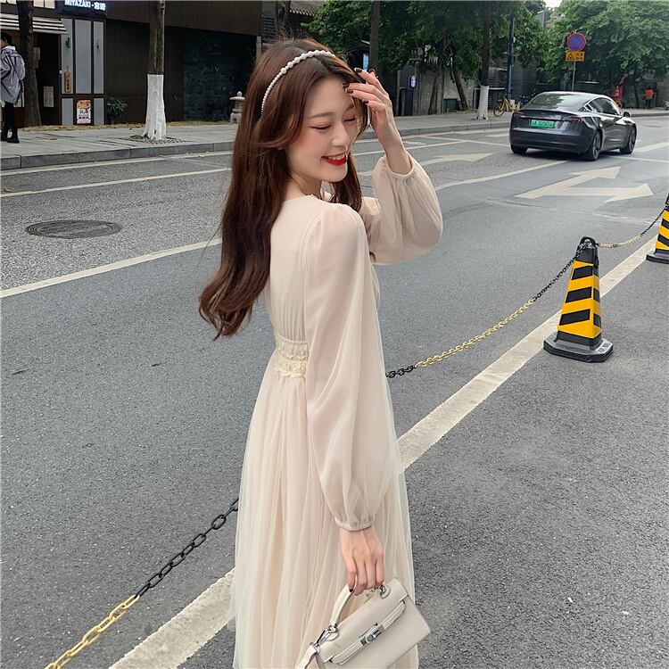 スプリングメッシュワンピースレディーススタイルVネックゆったりスカート 春物 Marchs10326089358