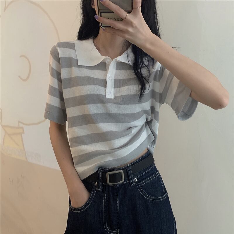 セーター カラーブラックホワイトストライプショートTシャツレディース夏服トップス ハイウェストウェストパンツ 大人ガーリー スウィート キュート カジュアル 夏物 シルク ウエスト Marchs41539446923