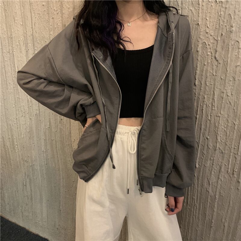 レディースフードセーター スプリング韓国ファッションルーズショートジッパーカーディガンジャケット 春物 スタイル Marchs45934440921