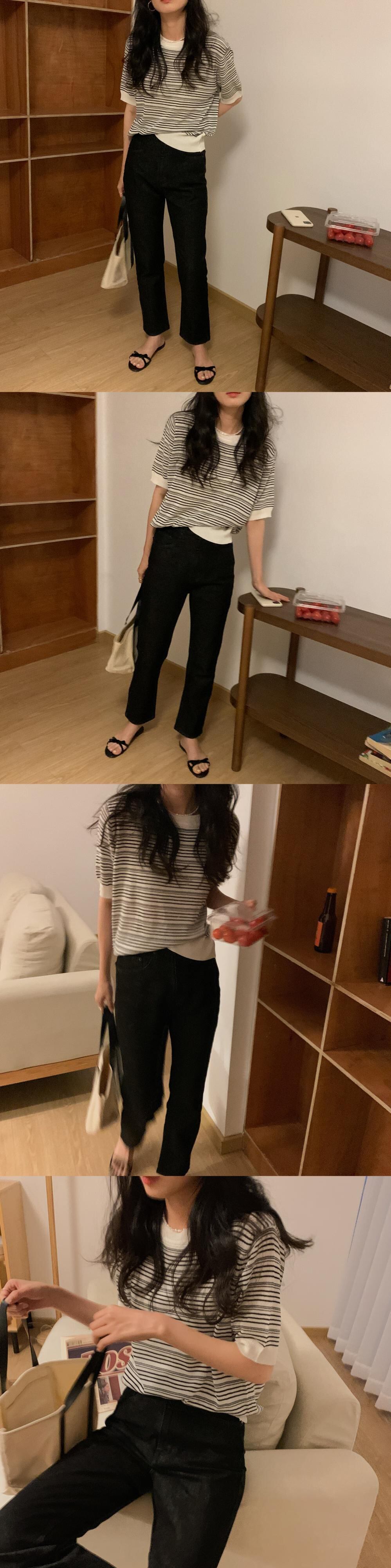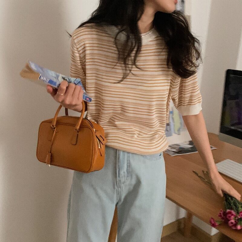 スタンダードスタイルルーズラウンドネックカラーストライプセーター Tシャツトップス レディース レトロ Oネック シルク Marchs88946077871