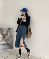 スタンダードハイウェストサイドスリットスカート レディース夏服薄手Aライン レトロ 夏物 ウエスト ミドル丈 Marchs94872076431
