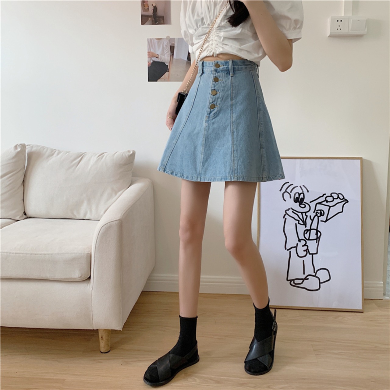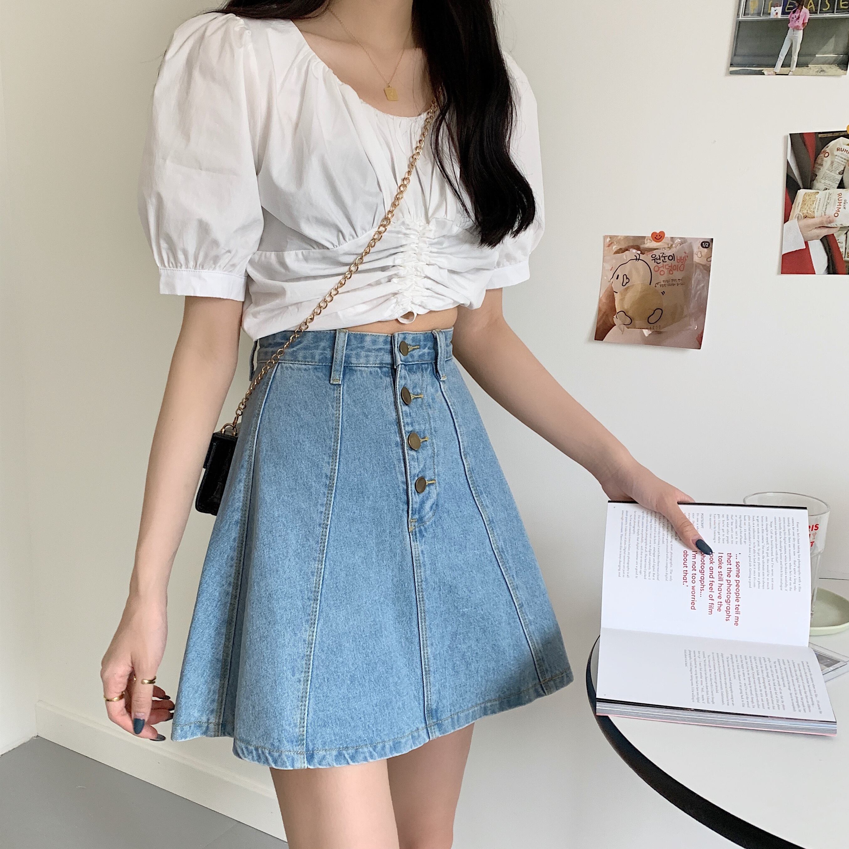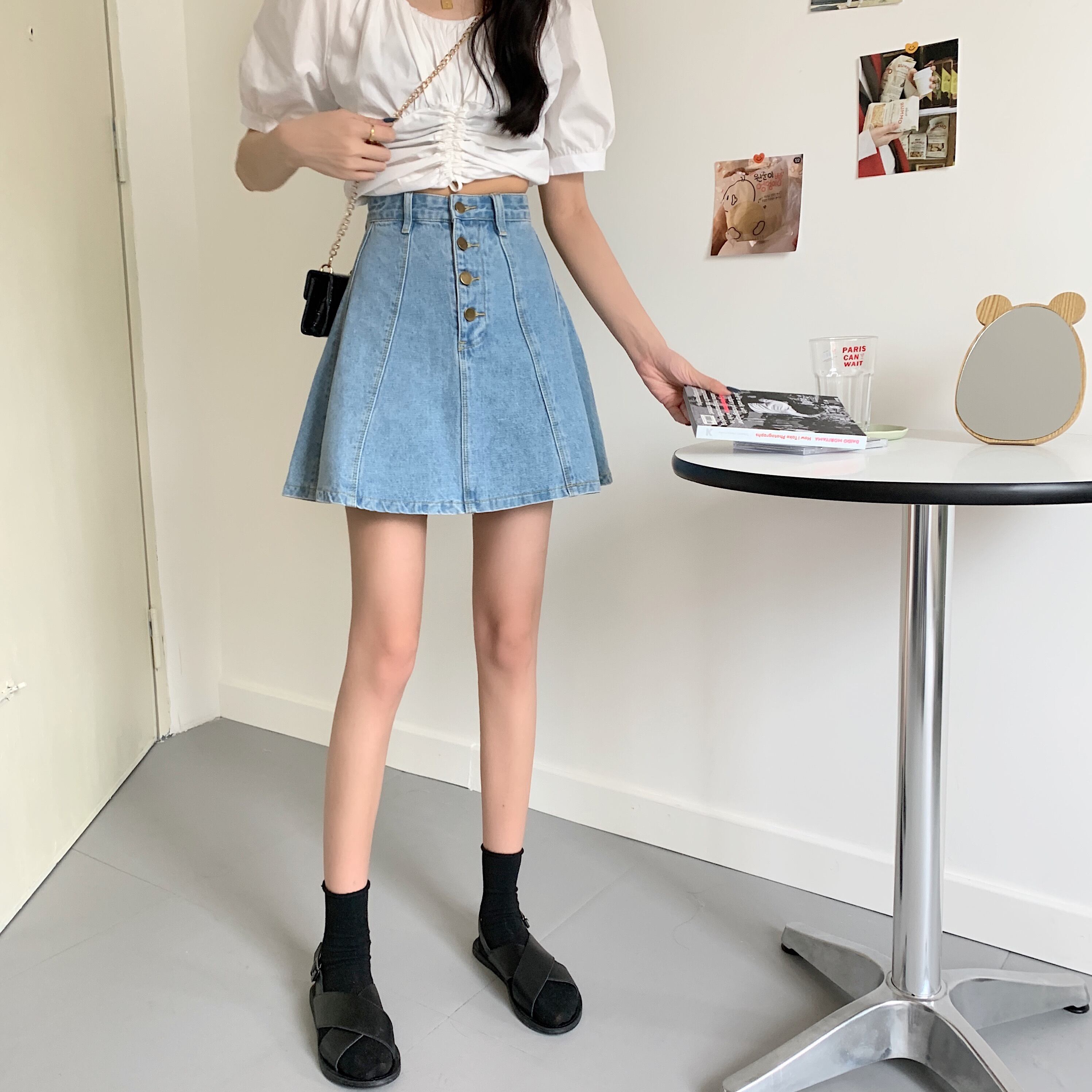 ブルースカート 夏服レディースハイウェストウェスト韓国ファッションAラインショート 夏物 スタイル ウエスト Marchs49943955894