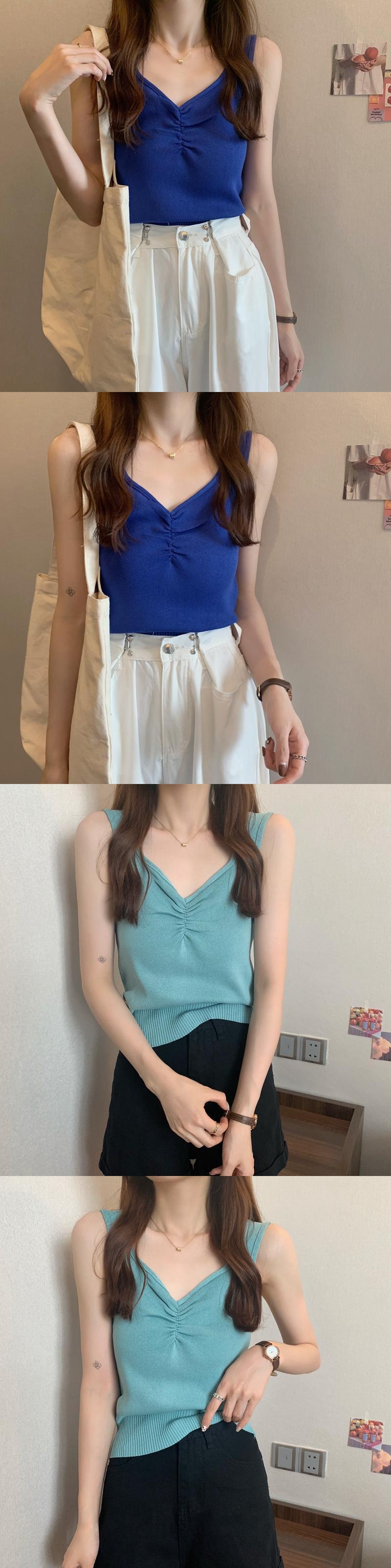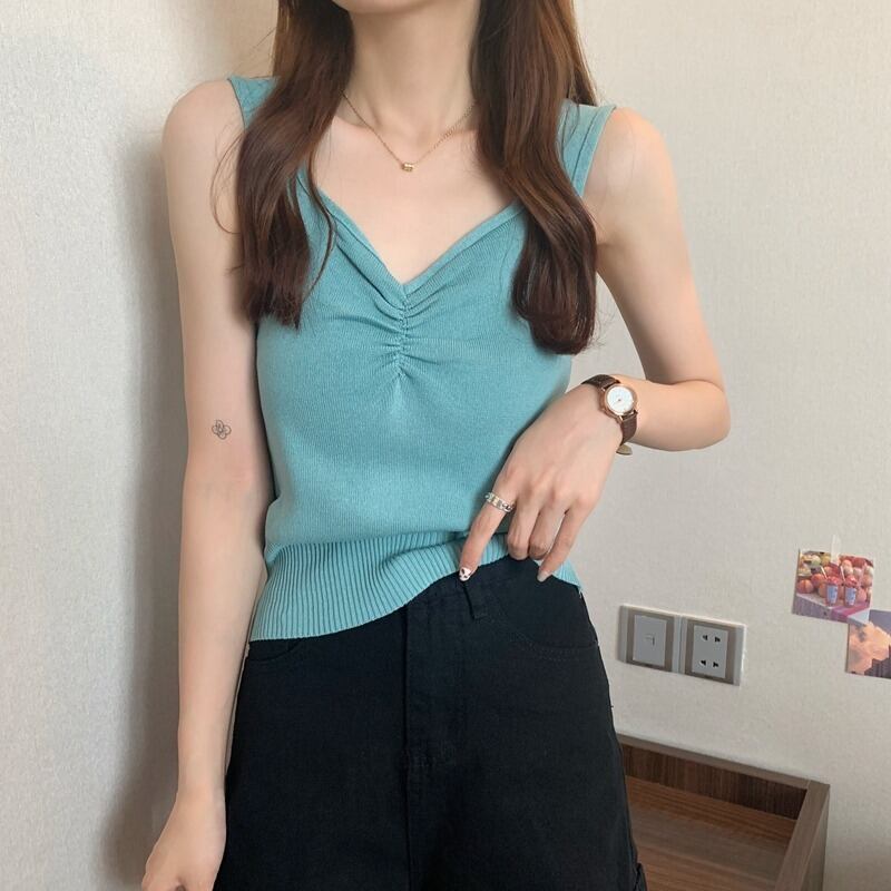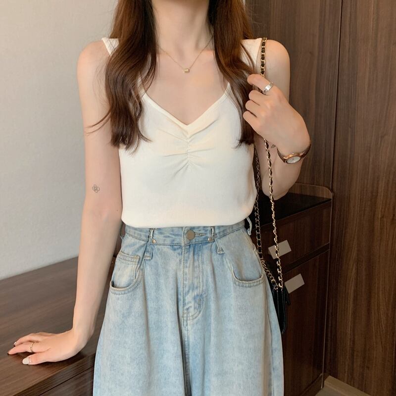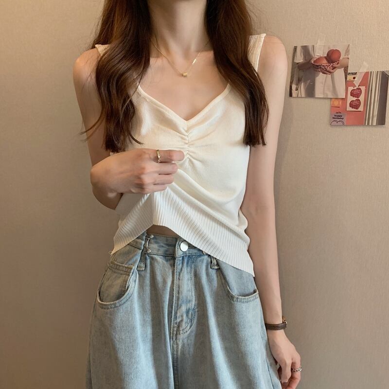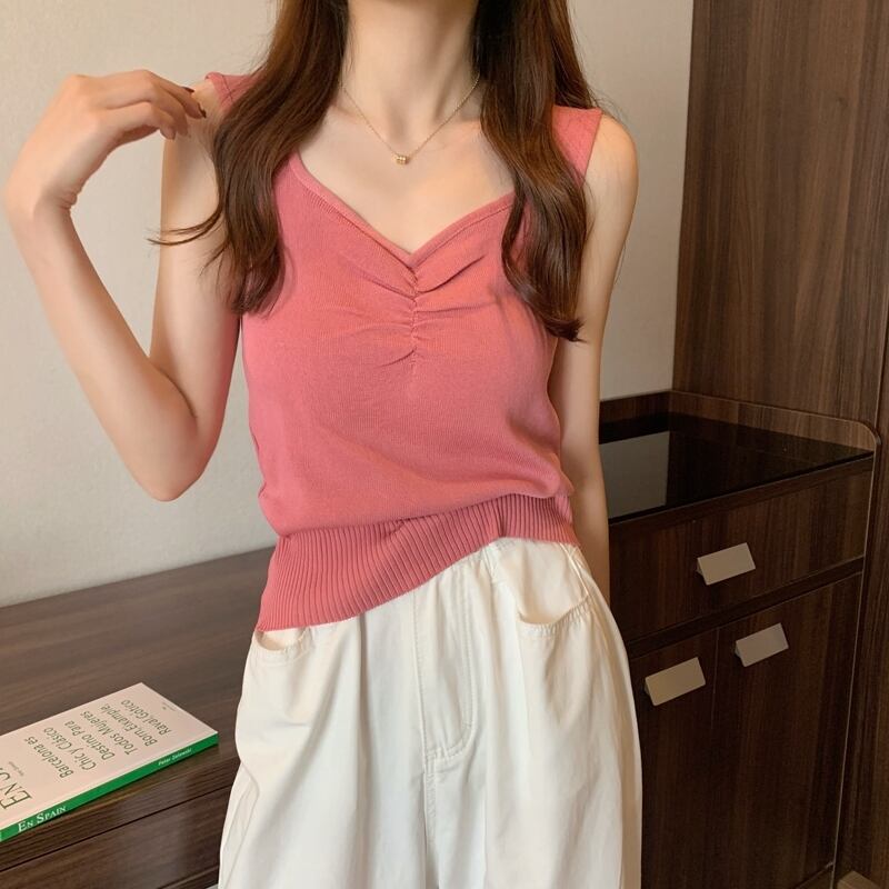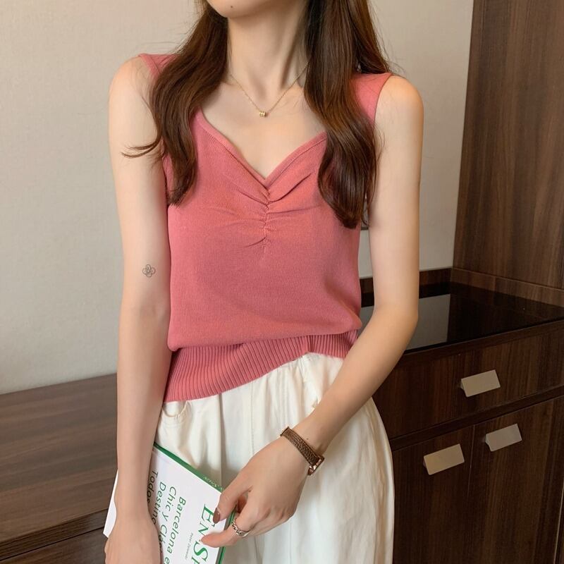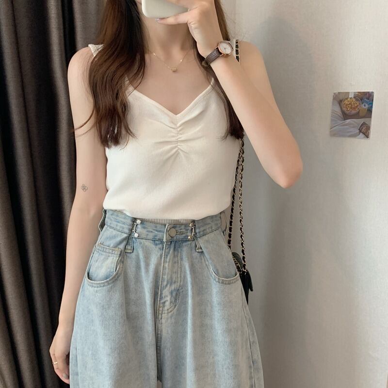 ホワイト夏服ニットゆったりノースリーブトップス 夏物 Marchs40216642090
