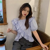 ホワイトシャツ 夏服薄手クロップトップ トップス 大人ガーリー スウィート キュート カジュアル 夏物 Marchs97813420495