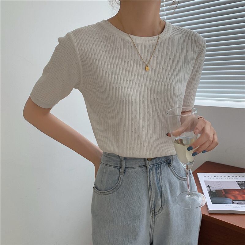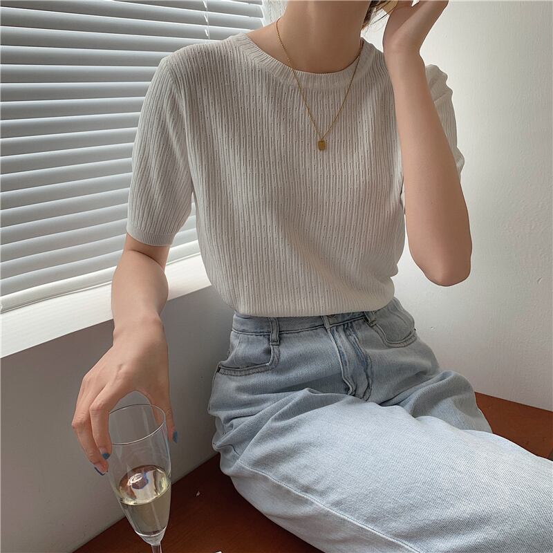 薄手セーター 夏服韓国ファッションルーズカジュアルストライプトップス Tシャツ 夏物 シルク スタイル Marchs83208135679
