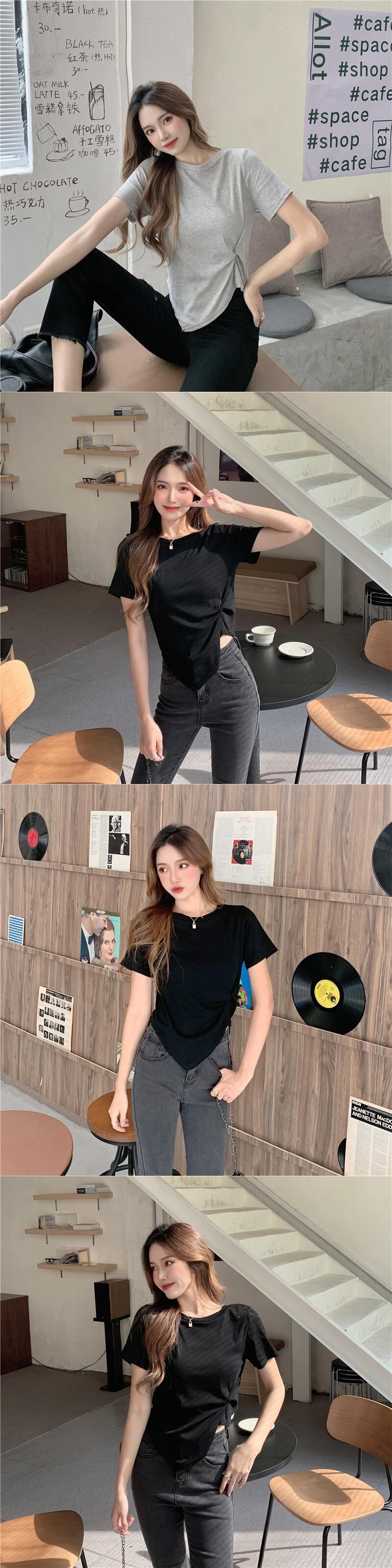 スリムグレーショート夏服 夏物 Oネック Tシャツ Marchs86682955488