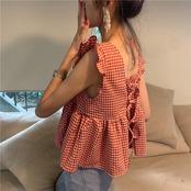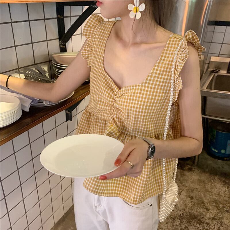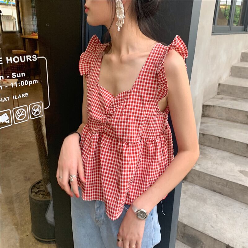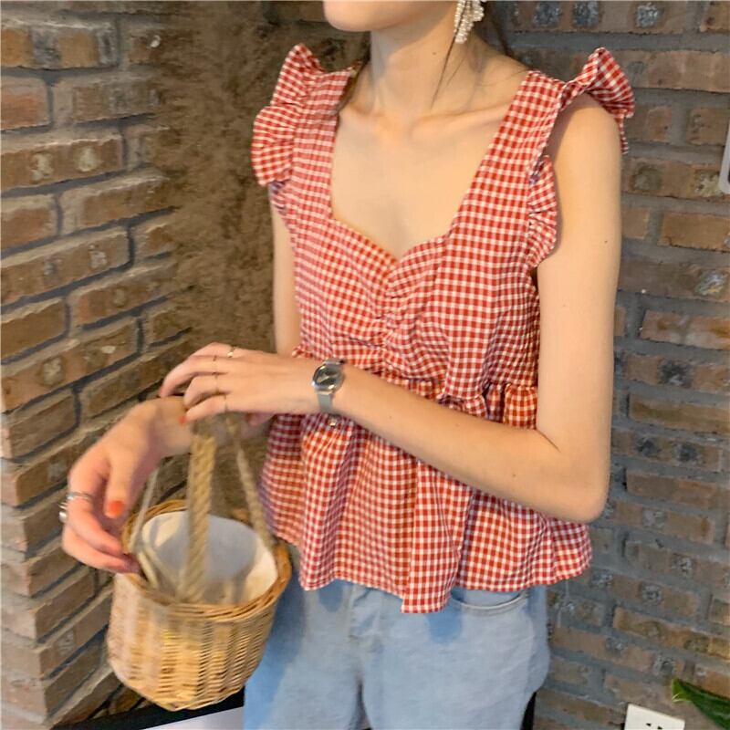 格子柄ショートレディース夏服韓国ファッショントップス 夏物 スタイル Marchs69867698498