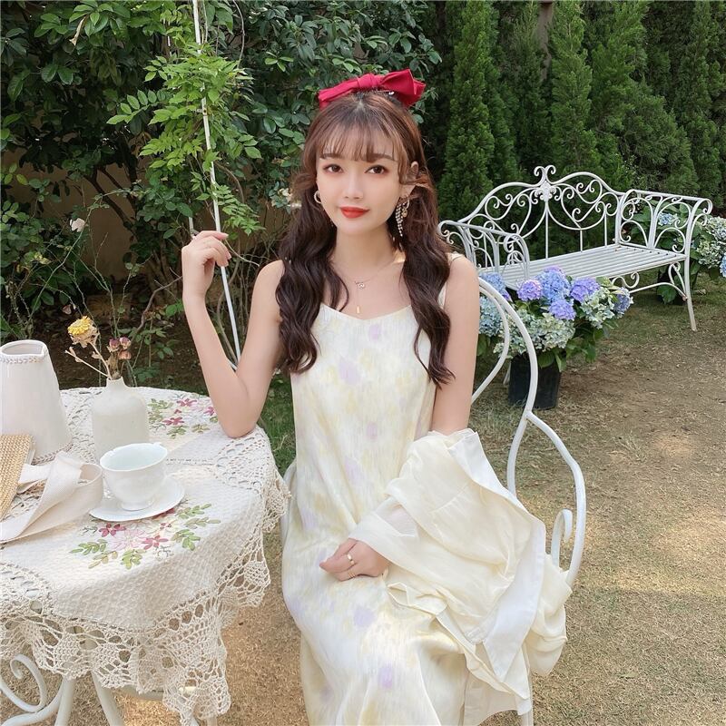 ブルーフローラルワンピースレディース夏服ロングスカート 大人ガーリー スウィート キュート カジュアル 夏物 花柄 Marchs39211869649
