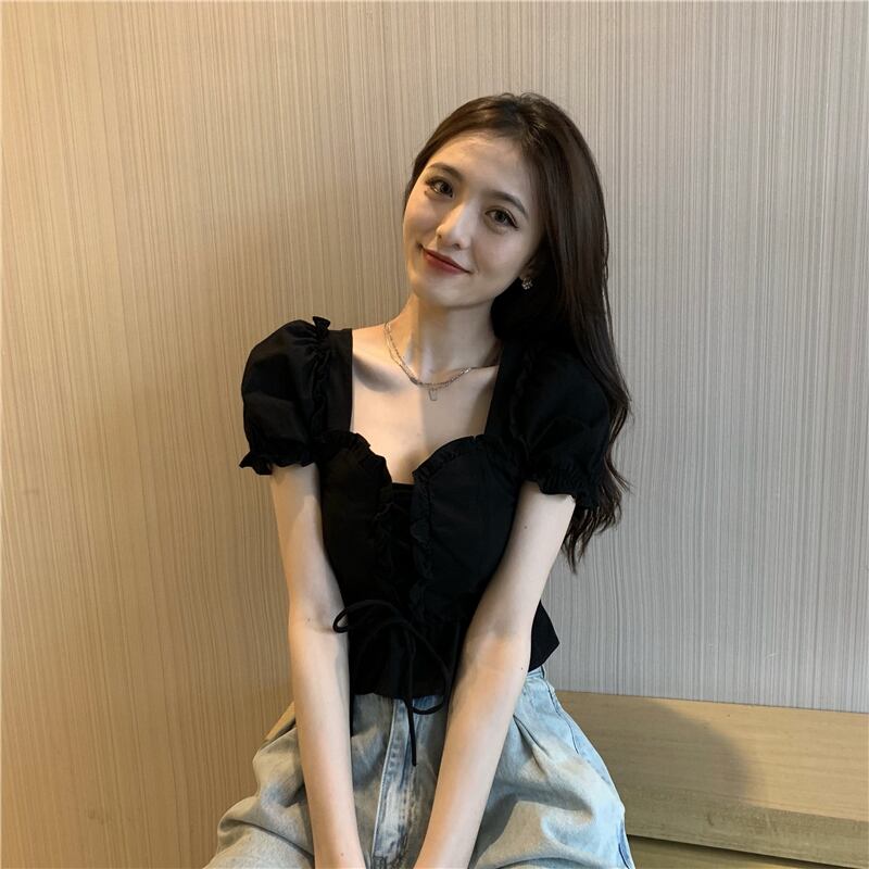カラーシャツ レディース夏服スリーブショートギャザートップス 夏物 スクウェア Marchs47103645921
