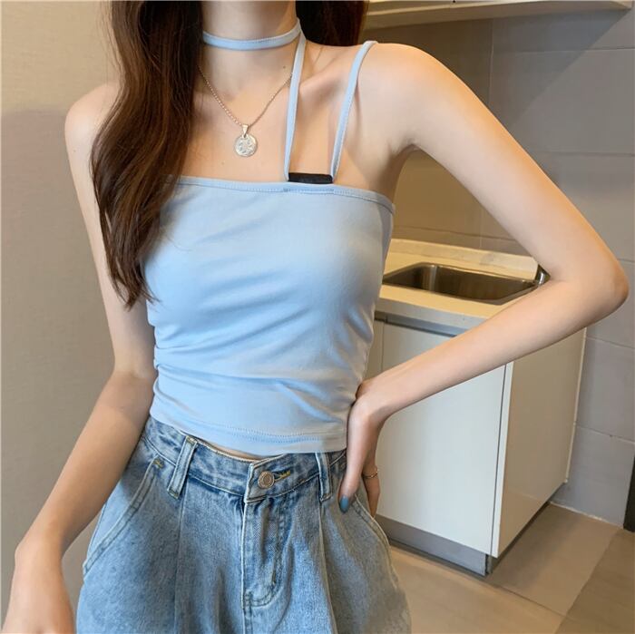 色:白いサスペンダー付きの黒いトップ,青いサスペンダー付きの青いブラウス,白いサスペンダー付きの白いブラウス