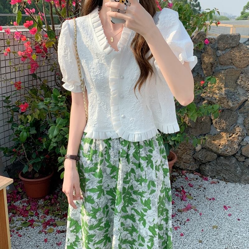 ブラウス 夏服スリーブパフスリーブホワイトシャツ レディース 大人ガーリー スウィート キュート カジュアル 夏物 Marchs74948942977