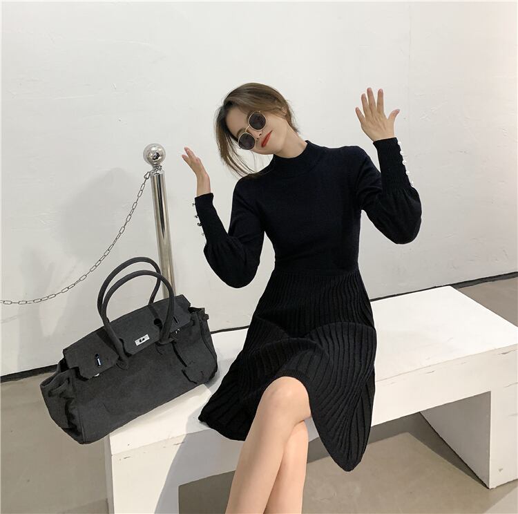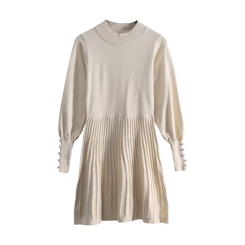 プリーツセーター スカート レディーススプリング韓国ファッションスタイルスリムニットワンピース 春物 ミドル丈 Marchs79189473907