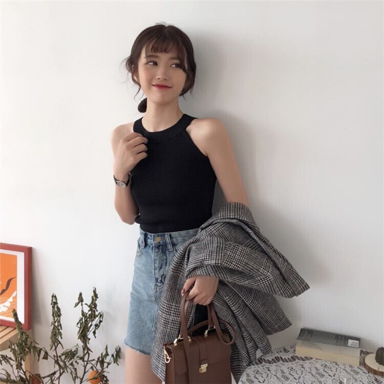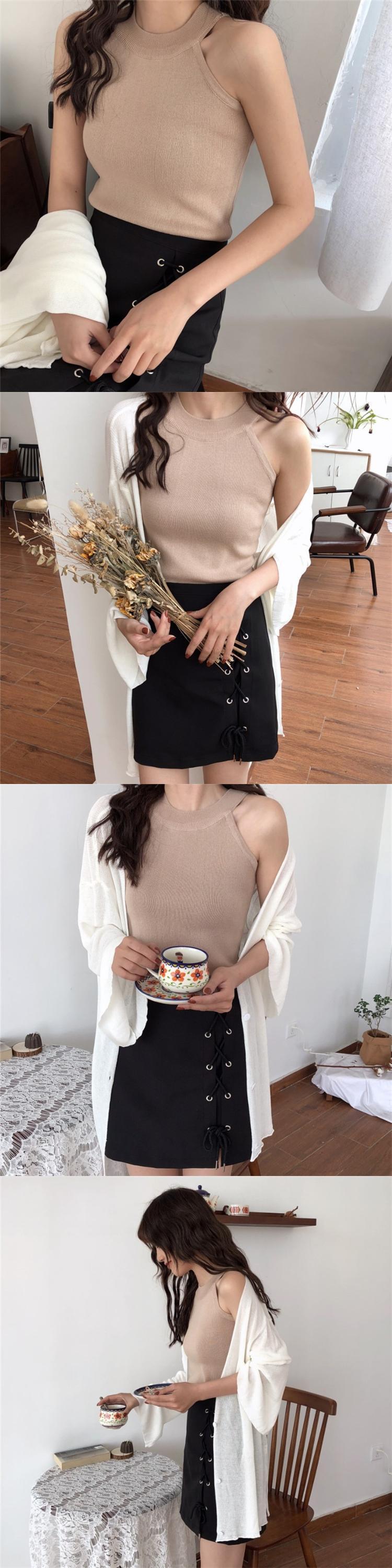 ニットトレンドノースリーブブラックホルタートップス 夏服 夏物 Marchs45714419856