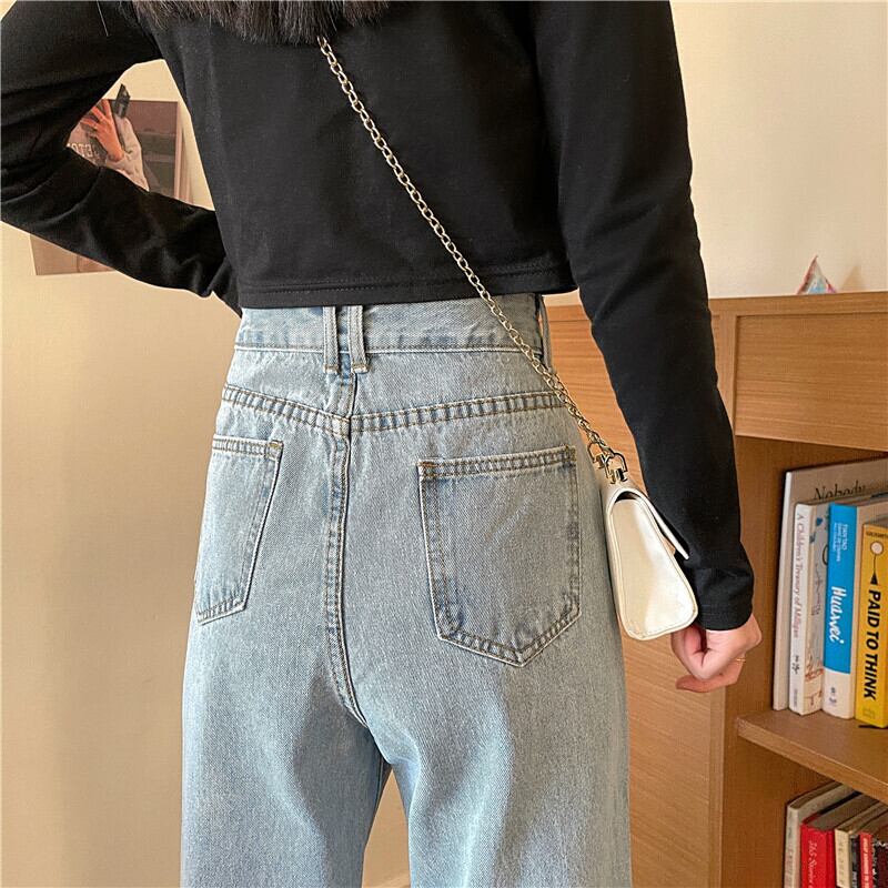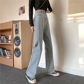 韓国ファッショントレンドスタンダードジーンズ ルーズ薄手ハイウェストパンツ レッド レトロ スタイル ウエスト Marchs86501603488