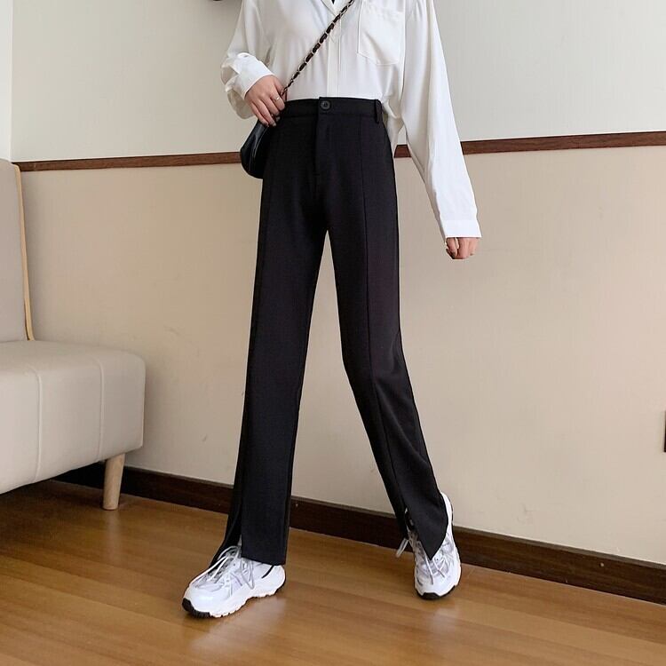 ウェストスリットパンツ スプリングカジュアルブラック レッド 春物 ウエスト Marchs52886872891