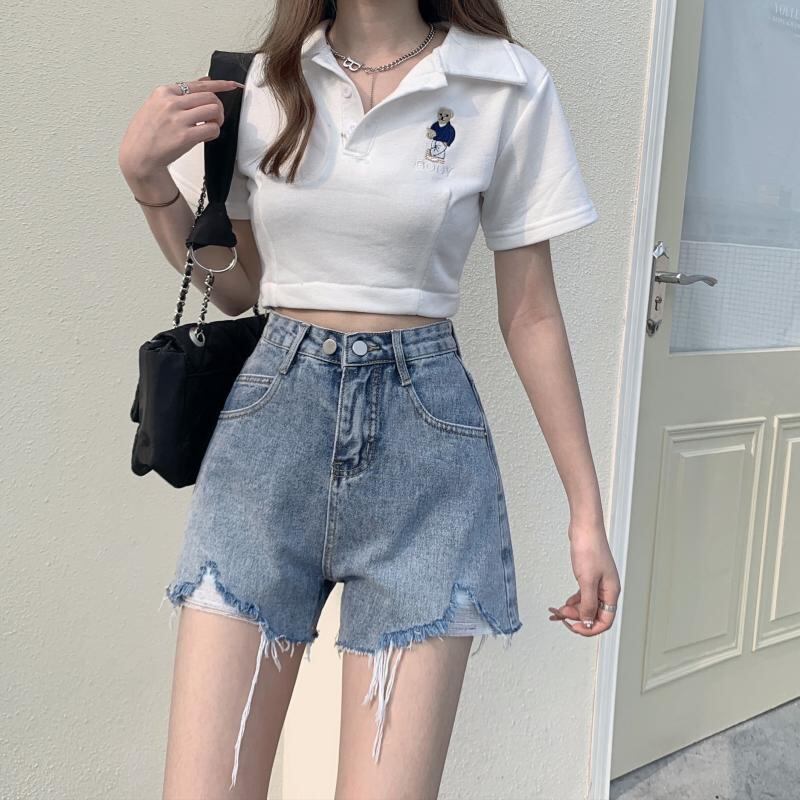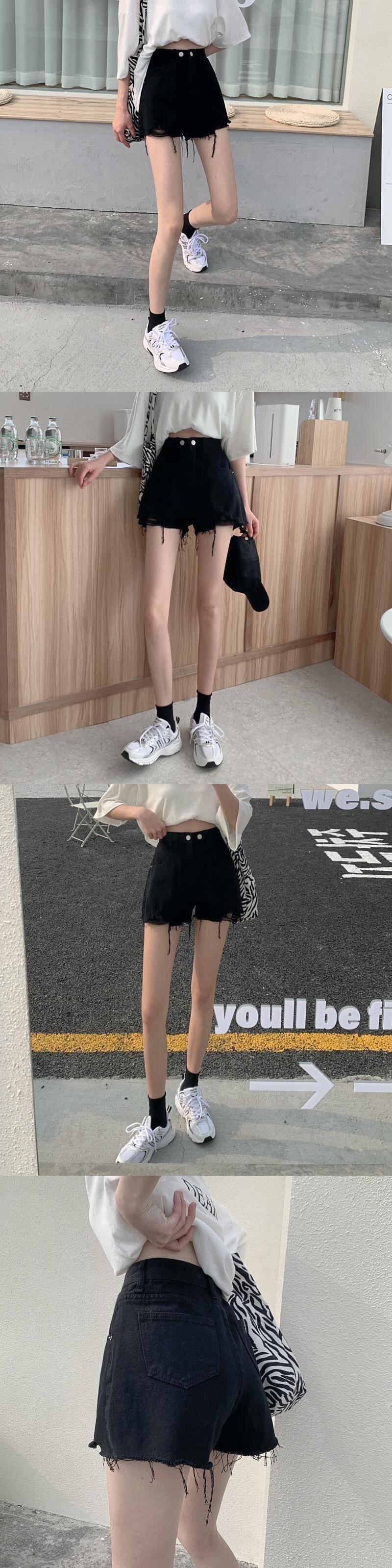 ジーンズ 夏服薄手Aラインショーツ ルーズハイウェストパンツ 夏物 ウエスト Marchs75860161009